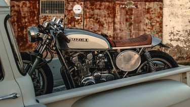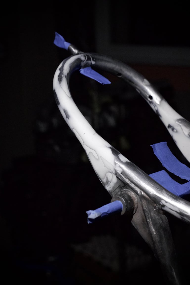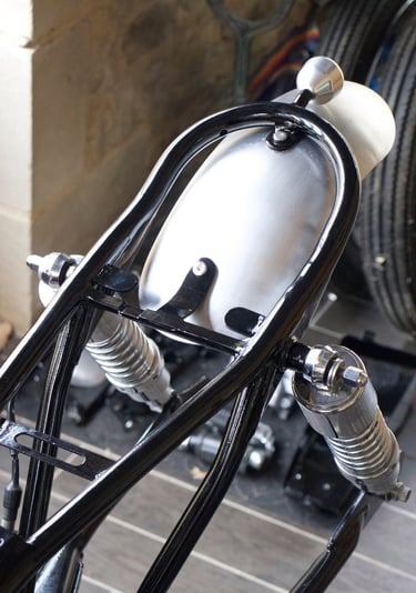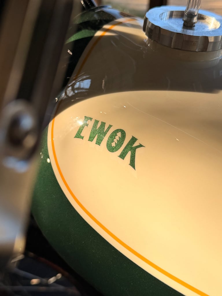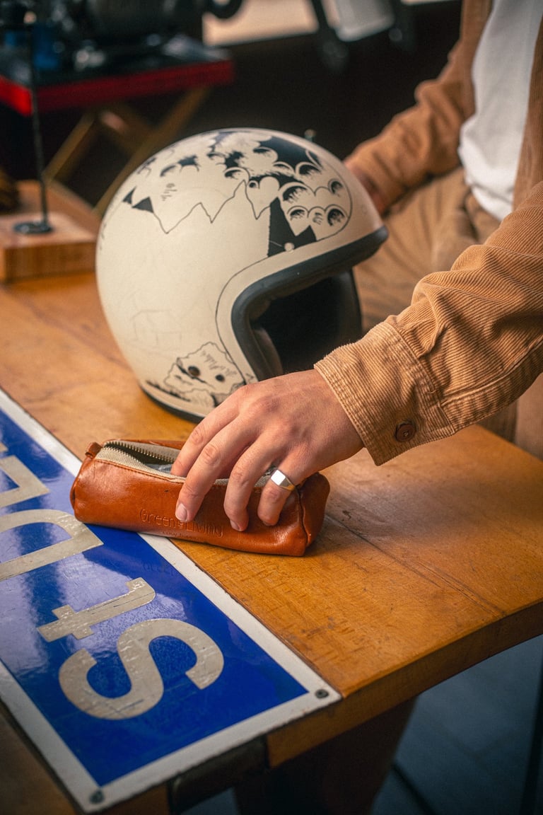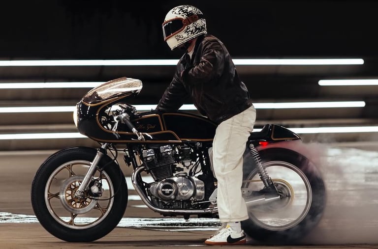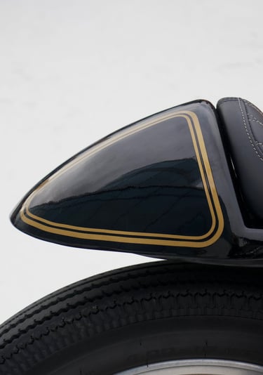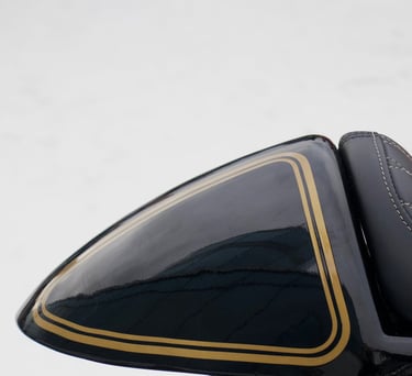 Ce casque à été réalisé dans le style des tatouages de son propriétaire (LeCentVingtCinq). Il fait référence à son parcours dans le milieu de la Custom culture. La base du casque est réalisé avec une peinture Candy à paillettes, suivie d'un dégradé de noir.