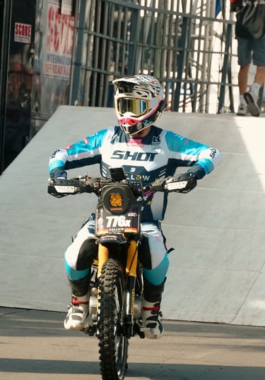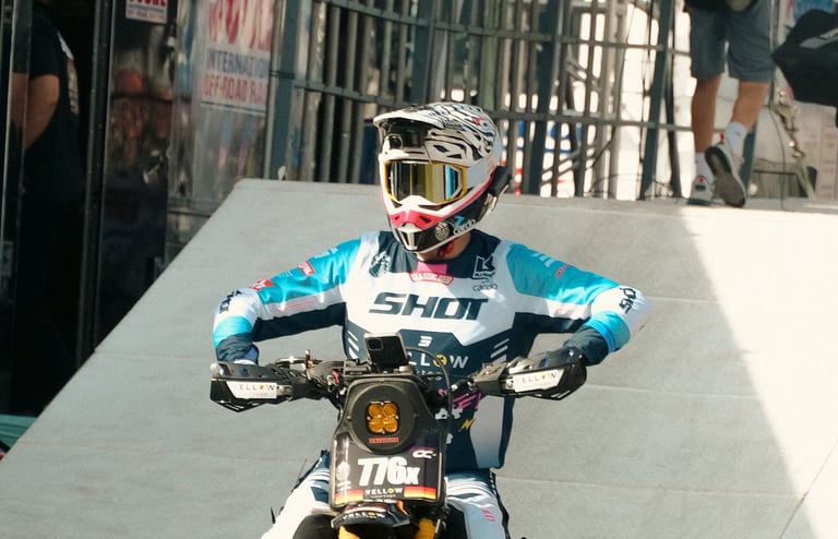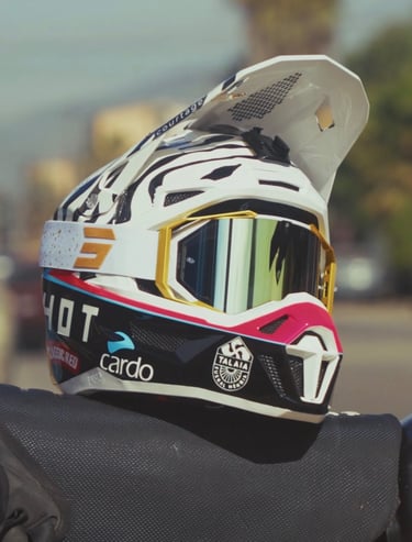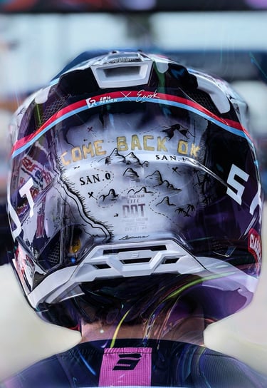 Ce casque à été personnalisé pour le pilote Greg Gilson à l'occasion de la course Baja 1000 au Mexique. Il arbore un motif de zèbre ainsi que de multiples sponsors, à l'arrière du casque le tracé de la course à été représenté avec un style graphique, faisant référence aux cartes au trésor de navigateurs.