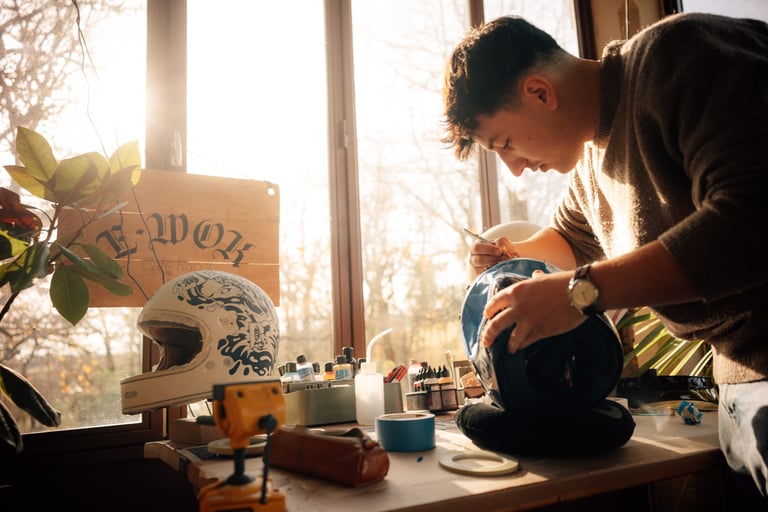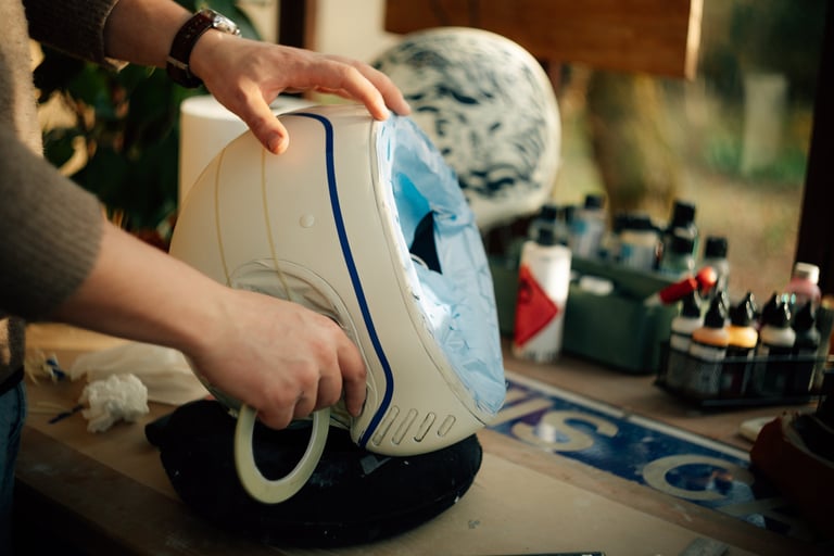 Création et réalisation d'un design personnalisé sur votre casque avec finition carrosserie